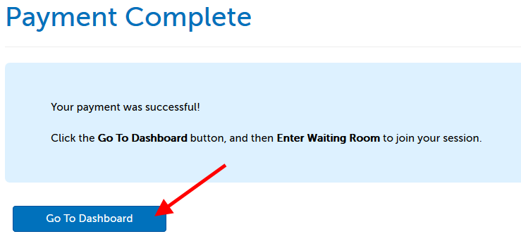 5. If the payment is successful, you will be taken to a confirmation page, "Payment Complete". Click on the "Go to Dashboard" button to continue.